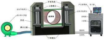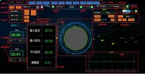 主控室液晶显示器:管材截面的最大/最小直径、平均值;设定的钢管长度、速度、标称直径、上下公差等;尺寸波动趋势预报(输入钢管长度和速度后可以对应外径在管材的位置),缺陷分析曲线。