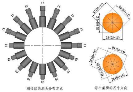 主控室液晶显示器:管材截面的最大/最小直径、平均值、椭圆度;各路测头的分项测量值;设定的钢管长度、速度、标称直径、上下公差等;尺寸波动趋势预报(输入钢管长度和速度后可以对应外径在管材的位置),缺陷分析曲线。